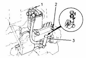 運(yùn)行注油泵的同時(shí)打開燃油濾清器上的螺塞(1)。