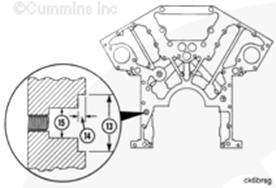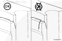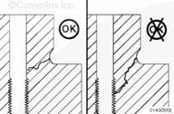 不必機加工缸體以去除可接受的裂紋。如果在初始檢查中發(fā)現(xiàn)不可接受的裂紋,則必須機加工沉孔臺階。與 Cummins® 特約維修站聯(lián)系。