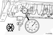 若要測量曲軸的軸向間隙,應(yīng)在油底殼法蘭上安裝千分表。