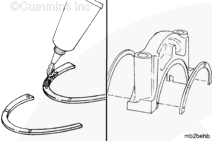 每道密封膠寬度必須在 3 至 5 mm [0.12 至 0.20 in] 之間,并且不得進(jìn)入到主軸瓦內(nèi)徑中。主軸承中的密封膠可能損壞發(fā)動(dòng)機(jī)。 |