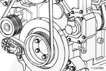 使用壓縮機(jī)驅(qū)動裝置或盤車裝置沿順時針旋轉(zhuǎn)方向(從發(fā)動機(jī)前方看)盤動發(fā)動機(jī)。將減振器上的 A 標(biāo)記與齒輪室蓋上的指示箭頭對齊。
