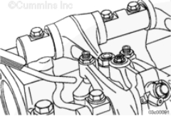 使用度盤式扭矩扳手(量程 0 到 150 in-lb)擰緊噴油器搖臂調(diào)節(jié)螺釘。如果調(diào)整過程中螺釘發(fā)出咔噠聲,則需要維修螺釘和搖臂。