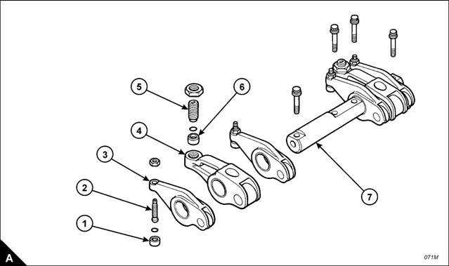 Note: Fit a new ‘O’ ring seal to any rocker lever adjuster if its button (A) has been removed from the