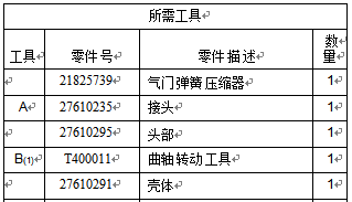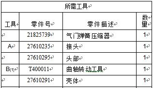 注:如果需要更換所有氣門彈簧,可以同時(shí)在兩個(gè)氣缸上進(jìn)行本程序。本程序可在下列氣缸上進(jìn)行。1和6,2和5和3和4。請牢記在拆卸氣門彈簧時(shí)不得轉(zhuǎn)動曲軸。確保在從一對氣缸換到另一對氣缸之前安裝完所有氣門彈簧。如果所有氣門彈簧均不需要更換,則必須成對更換彈簧。