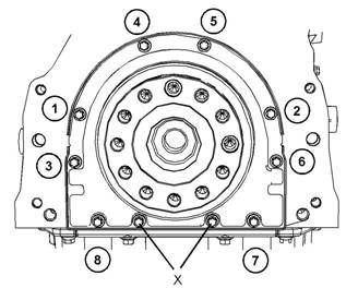 10將其余的torx螺釘(4)安裝到位置(X)處。使用工具(A)擰緊torx螺釘至扭矩為22N·m(195lbin)。請(qǐng)參閱插圖105。