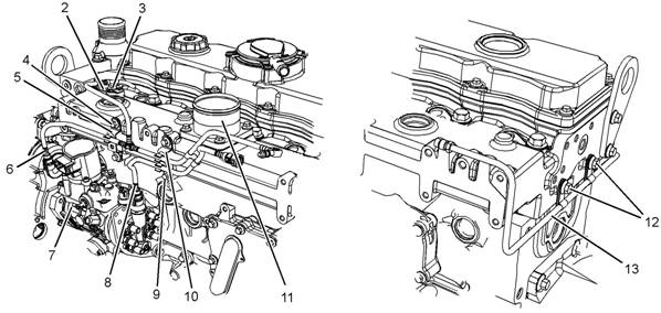 9如有必要,將管組件從缸蓋和噴油泵的增壓控制上拆下。有關(guān)正確的步驟,請參閱《拆解和組裝》,“噴油泵-拆卸(帶增壓控制)”。