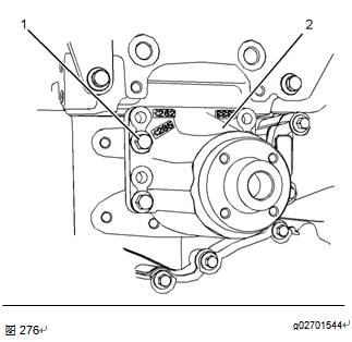3將螺栓(1)安裝到風(fēng)扇驅(qū)動組件(2),并用手?jǐn)Q緊。將螺栓擰緊至扭矩44N·m(32lbft)。
