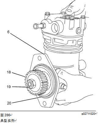 3如果發(fā)動機在空氣壓縮機后部配備一個液壓泵,卸下該液壓泵。有關(guān)正確的步驟,請參閱OEM信息。