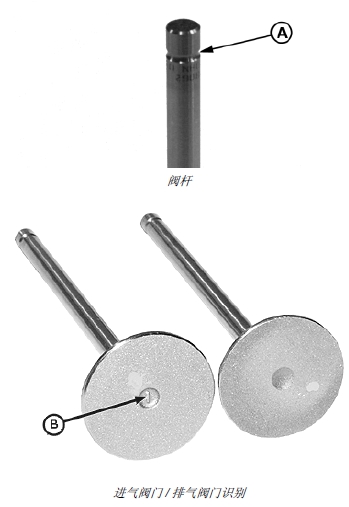 注意: 進氣閥門的氣門頭外徑較大,氣門頭上有一個凸起的 “I” 標(biāo)記。排氣氣門頭無磁性。