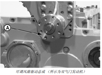 13. 拆下可調(diào)風(fēng)扇驅(qū)動總成 (A)。(參見第 070 章中的“拆卸和檢查風(fēng)扇驅(qū)動總成”部分。)