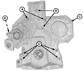 注意: 為便于組裝,拆卸前請標(biāo)記并確定正時齒輪蓋緊固件的位置。