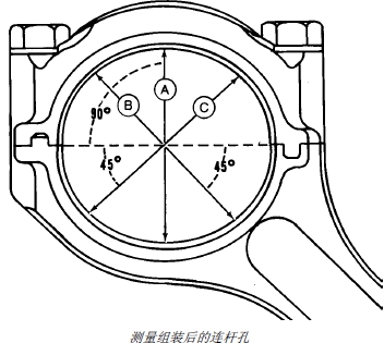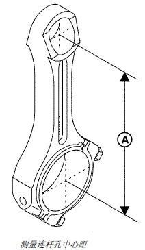 9. 測量連桿活塞銷孔中心到曲軸孔中心的尺寸 (A),并與給定的技術(shù)規(guī)格比較。如果測量值不符合技術(shù)規(guī)格要求,應(yīng)更換連桿。