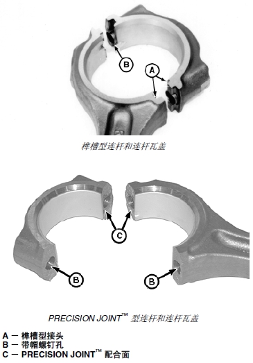 重要提示: 切勿劃傷連桿和連桿瓦蓋的連接面。對于確保 PRECISION JOINT™ 連桿正確安裝來說,這是非常重要的。禁止用鋼絲刷或其他工具刷連接面,必須保護(hù)互鎖配合面,不能留下任何碎屑。
