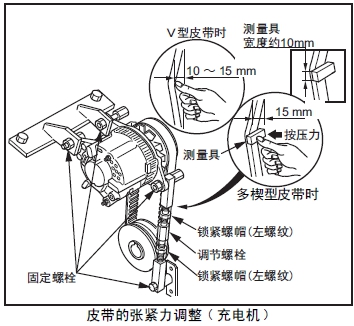 1.6.2 皮帶的張緊力調(diào)整( 三菱S16柴油機充電機)