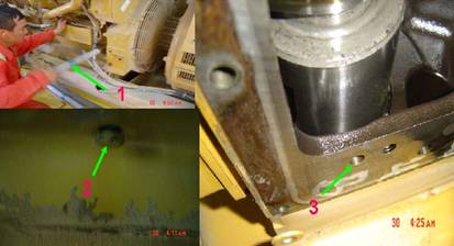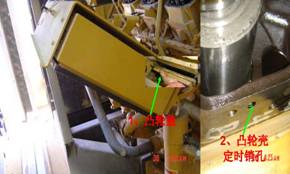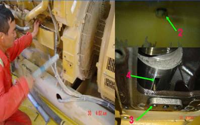 第一缸排氣沖程式上死點 并按柴油機正常轉向再將飛輪1轉動360°將定正時螺栓2擰入氣輪,凸輪固定銷孔3與凸輪軸銷孔4已對不上證明是第一缸排氣沖程式上死點??ㄌ乇死詹裼桶l(fā)動機|卡特彼勒柴油發(fā)動機氣門間隙調節(jié)技術|卡特彼勒柴油發(fā)動機氣門間隙調節(jié)資料|卡特彼勒柴油發(fā)動機氣門間隙調節(jié)維修服務商