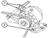 每3個月應(yīng)對發(fā)動機(jī)傳動皮帶進(jìn)行一次檢查。如果發(fā)動機(jī)傳動皮帶出現(xiàn)磨損或損壞,應(yīng)對發(fā)動機(jī)傳動皮帶進(jìn)行更換。 檢查皮帶張力時,可在兩皮帶輪中間位置施加110N的作用力,正常情況下,皮帶應(yīng)偏移5~15mm。
