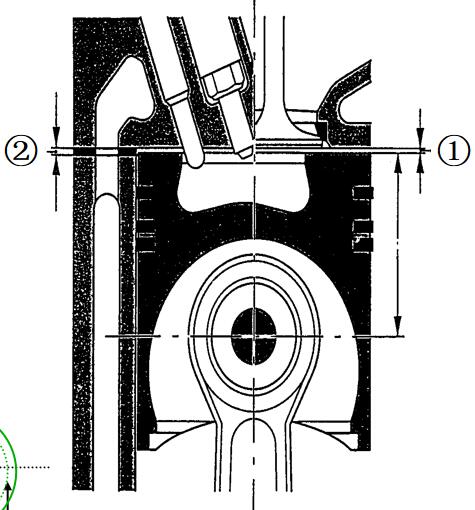 缸墊平面與活塞頂部高度差=②-① (頂隙①的范圍是0.9-1.1mm)