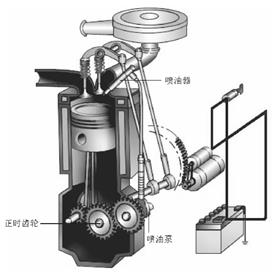④曲軸旋轉(zhuǎn)時,通過正時齒輪驅(qū)動凸輪軸旋轉(zhuǎn),凸輪軸上的凸輪定期將氣門推離氣門座圈,使氣門打開。當凸輪對氣門的推力消失后,氣門在氣門彈簧彈力的作用下關(guān)閉。