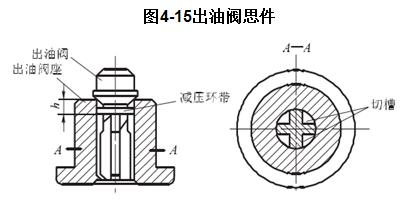 出油閥偶件是為在噴油結(jié)束后使高壓油管卸載,以及在每個(gè)噴油循環(huán)內(nèi)把高壓及低壓油路分開而設(shè)置的,其結(jié)構(gòu)如圖4-15所示。出油閥上部的圓錐面為閥的軸向密封錐面;中部的圓柱面為減壓環(huán)帶,與閥座內(nèi)孔精密配合,是閥的徑向滑動(dòng)密封面;閥的尾部同閥座內(nèi)孔為滑動(dòng)配合,出油閥偶件位于柱塞套上面,二者接觸平面要求嚴(yán)密配合。壓緊座以規(guī)定力矩?cái)Q入后,通過(guò)高壓密封墊圈將閥座與柱塞套壓緊,同時(shí)使出油閥彈簧將出油閥壓在閥座上。