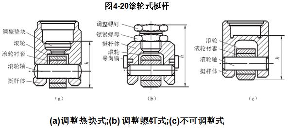 滾輪式挺桿有3種形式:調(diào)整墊塊式、調(diào)整螺釘式、不可調(diào)整式,如圖4-20所示。