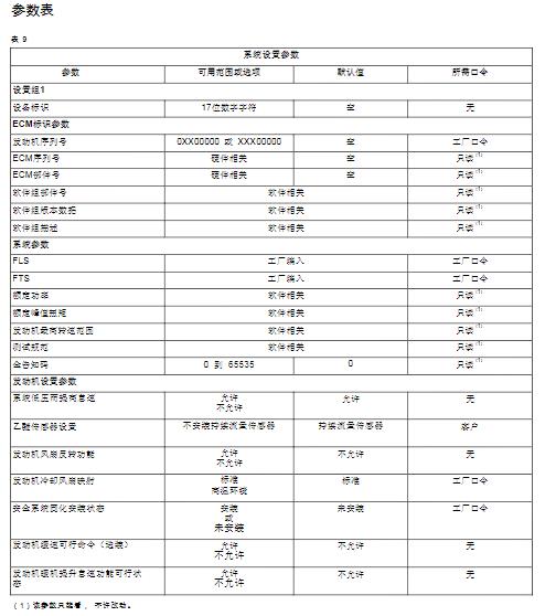 系統(tǒng)設置參數(shù)i02491439系統(tǒng)設置參數(shù)SMCS代碼:1901S/N:ZXT1-Up;LHX1-UpS/N:ASX1-Up;LHX1-UpS/N:ZBD1-Up;LHX1-UpS/N:AZW1-Up;LHX1-UpS/N:ZHC1-Up;LHX1-UpS/N:AWF1-Up;LHX1-UpS/N:XTR1-Up;RHX1-UpS/N:BXD1-Up;RHX1-UpS/N:XDC1-Up;RHX1-UpS/N:BXY1-Up;RHX1-UpS/N:BTX1-Up;RHX1-UpS/N:4091-Up;RHX1-Up系統(tǒng)設置參數(shù)是特別設定的發(fā)動機排放水平、功率范圍和特別應用的參數(shù)。參數(shù)的默認值由工廠編程設定。一些參數(shù)可以改變以適合發(fā)動機的特殊應用。如果電子控制模塊(ECM)更換,必須重新載入系統(tǒng)設置參數(shù)。如果你更新ECM快存文檔,則不必重新載入系統(tǒng)設置參數(shù)。某些設置參數(shù)被標記在發(fā)動機信息銘牌上。注意:如果受工廠密碼保護的參數(shù)被改變,卡特免除擔保責任。參數(shù)描述設備標識“設備標識”參數(shù)允許客戶向ECM輸入一些描述以明確發(fā)動機的應用。字段中最多能填入17個字符。