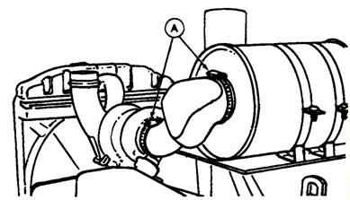 3.檢查軟管卡箍(A)是否緊固。更換無(wú)法正確擰緊的卡箍。這將有助于防止灰塵進(jìn)入進(jìn)氣系統(tǒng)