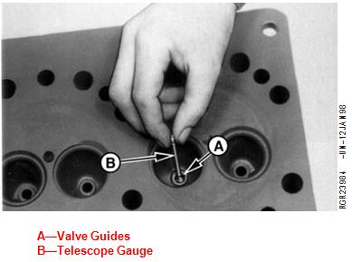 測(cè)量約翰迪爾氣門導(dǎo)管使用伸縮規(guī)(B)和千分尺測(cè)量氣門導(dǎo)管(A)的磨損情況。