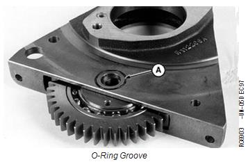 12. Grease O-ring groove (A) in back side of idler housing. Insert O-ring.