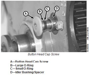 15. Check condition of O-rings (B) and (C) on large D—Idler Bushing/Spacer