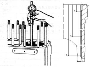 1.測量內(nèi)徑。檢查進、排氣閥導管有無腐蝕現(xiàn)象發(fā)生,用內(nèi)徑表測量其內(nèi)徑并做記錄。結合氣閥閥桿外徑的測量尺寸,計算兩者之間的間隙。