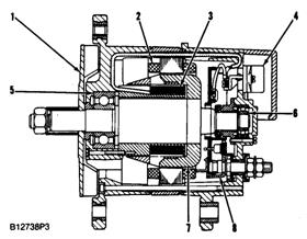 (1)風(fēng)扇(2)定子繞組(3)勵磁繞組(4)穩(wěn)壓器(5)滾珠軸承(6)滾柱軸承(7)轉(zhuǎn)子(8)整流器組件
