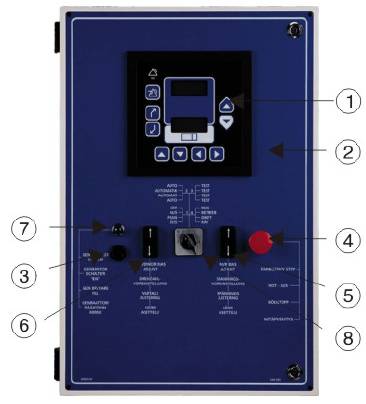 此系列的控制系統(tǒng)是由一個微電腦處理器(2組4行16位英文液晶屏幕)組成,此微電腦處理器使用密碼保護方法來更改內(nèi)部程序而配合機組需求,所以可以安裝于所有威爾信的發(fā)電機組上,用