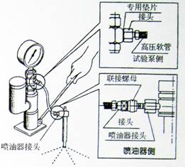 ②用試驗(yàn)用的高壓軟管連接噴油器和試驗(yàn)泵。