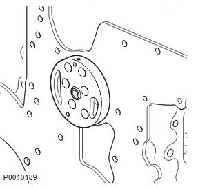 12 安裝不帶減振器的曲軸齒輪。對準(zhǔn)標(biāo)記與沃爾沃發(fā)動(dòng)機(jī)正時(shí)盤中的孔。在螺栓下面房子適當(dāng)?shù)母羝米鳒p振器替換件。