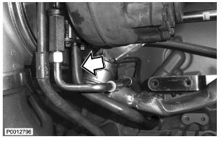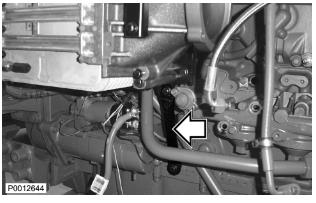 74 僅適用于 D13B-A/C/G/H/K/L,D13C2-A,D13C4-A(雙渦輪增壓器)安裝渦輪增壓器和廢氣門閥輸油軟管。用一個電纜結(jié)將廢氣門閥輸油軟管固定到渦輪增壓器回油管上。