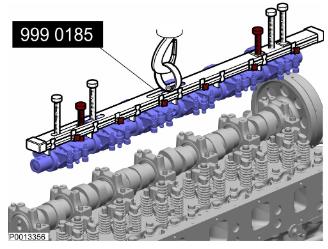 70 安裝搖臂橋。引導(dǎo)所有搖臂,使其回到正確的位置。從搖臂橋上拆下提升工具。