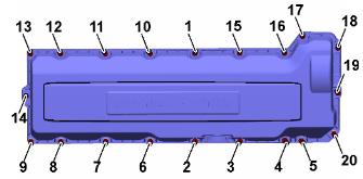 74 安裝氣門室蓋。緊固扭矩:24 Nm (17.7 lbf.ft.)。75 安裝燃油管路。緊固扭矩:48 Nm (35.40 lbf.ft.)。