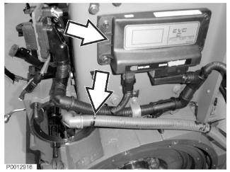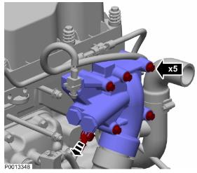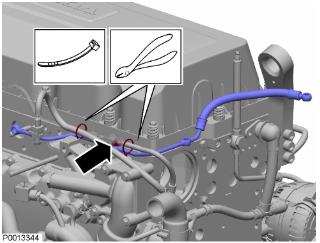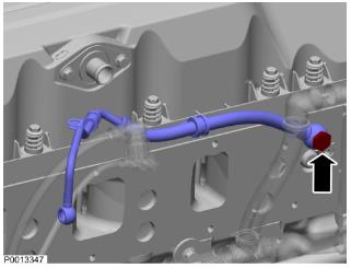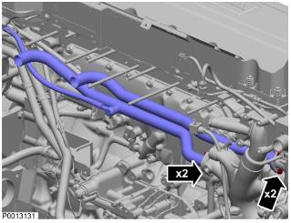 76 安裝燃油回流管路。緊固扭矩:48 Nm (35.40 lbf.ft.)。