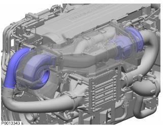 85 安裝渦輪增壓器;參見低壓渦輪,更換 297 頁。僅適用于 D13B-B/D/E/F/J/M/N(單渦輪增壓器)安裝空氣過濾器與渦輪增壓器之間的管路。僅適用于 D13B-A/C/G/H/K/L(雙渦輪增壓器)安裝 Y 形管和兩個撓性管。所有發(fā)動機安裝隔熱罩。