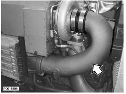 5 將管路和夾子從增壓空氣冷卻器上拆下。松開(kāi)增壓空氣冷卻器水連接軟管夾。
