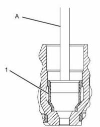 6. 將CAT卡特C13珀金斯2206柴油機(jī)電子單體噴油器套筒(1)和工具(A)放置在氣缸蓋中。小心不要損壞O形密封圈(2)和(3)。