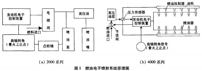 德國奔馳MTU2000系列柴油機(jī)采用電磁閥控制的電子噴射系統(tǒng),其工作原理如圖i(a)所示¨’。它是一個電磁