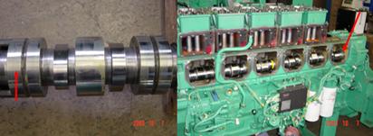 康明斯Cummins QSK23發(fā)動(dòng)機(jī)具有 105 mm 軸頸的凸輪軸高位安裝在氣缸體上。這種安裝位置使得推桿行程最短。