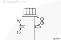 注: 部分 K38 缸蓋使用的 170 mm [6.75 in] 螺栓上采用了兩種不同的螺栓涂層。當前的螺栓為黑色。之前的螺栓為銀色,且已經(jīng)不再使用。