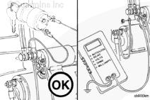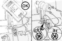 如果萬用表指示電壓且起動馬達無法工作,則起動馬達電磁閥有故障,必須進行更換。參考第 13 節(jié)中的步驟 013-020。