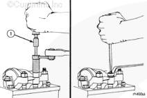 按下?lián)u臂直到到達(dá)康明斯噴油器底部 2 到 3 次。這樣將去除康明斯噴油器油杯中的燃油和機(jī)油。