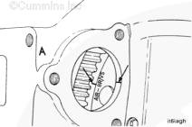 使用右排上的起動(dòng)馬達(dá)蓋時(shí),飛輪上的標(biāo)記必須以 A 開頭,否則氣門和康明斯噴油器將不能正確調(diào)整,造成推桿損壞。 |