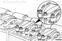 配備電動(dòng)康明斯噴油器”行駛法”步驟只可用來設(shè)定固定時(shí)間 PT®(D 型)康明斯噴油器。拆下康明斯搖臂室蓋以及所有相關(guān)部件。