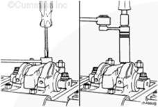 使用度盤式扭矩扳手?jǐn)Q緊康明斯噴油器搖臂的調(diào)節(jié)螺釘。如果在調(diào)節(jié)時(shí)引起調(diào)節(jié)螺釘發(fā)出嘎嘎聲,則需要維修調(diào)節(jié)螺釘和搖臂。