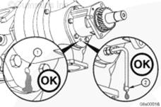 水泵包含一個(gè)油封和一個(gè)水封。改進(jìn)的水封于 1997 年 10 月投入生產(chǎn)(首臺(tái)發(fā)動(dòng)機(jī)生產(chǎn)序號(hào) 33139138)。這些密封件之間的空腔有通氣孔。如果密封件泄漏,通氣孔可防止?jié)櫥瑒┗蚶鋮s液污染。從通氣孔泄漏的機(jī)油和冷卻液不會(huì)影響泵的工作。在每次計(jì)劃的維護(hù)保養(yǎng)間隔,檢查通氣孔是否阻塞。建議的維護(hù)保養(yǎng)間隔是 250 小時(shí)或 6 個(gè)月。